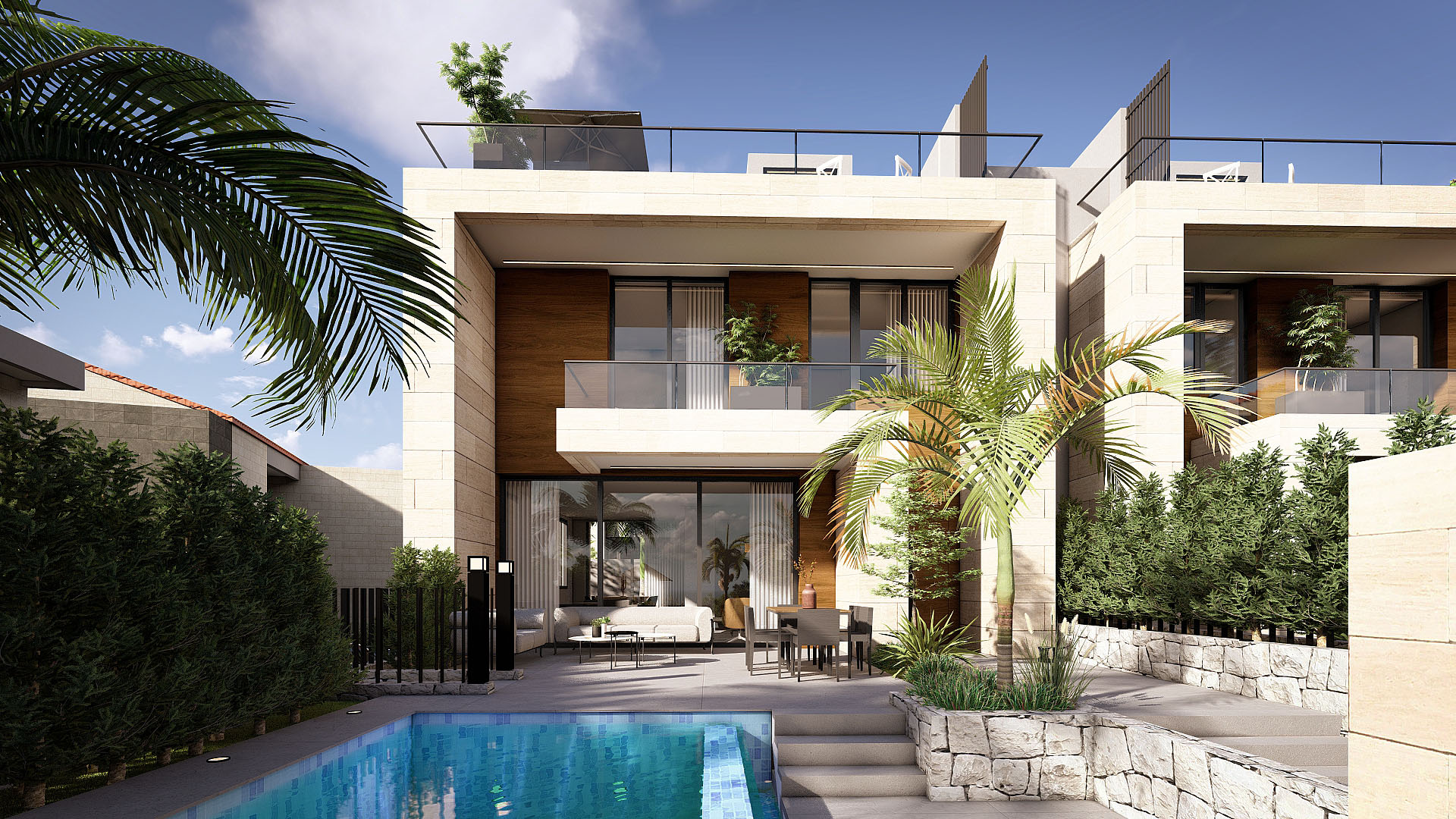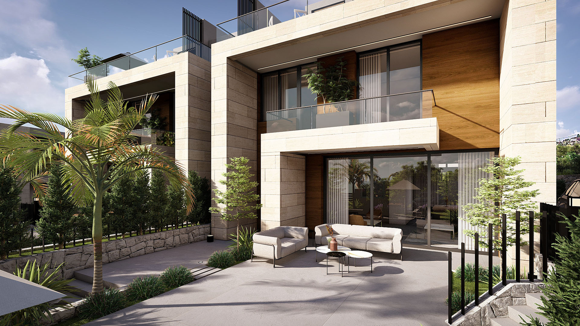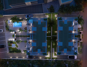 • Spacious twin villas with private gardens and terraces.
